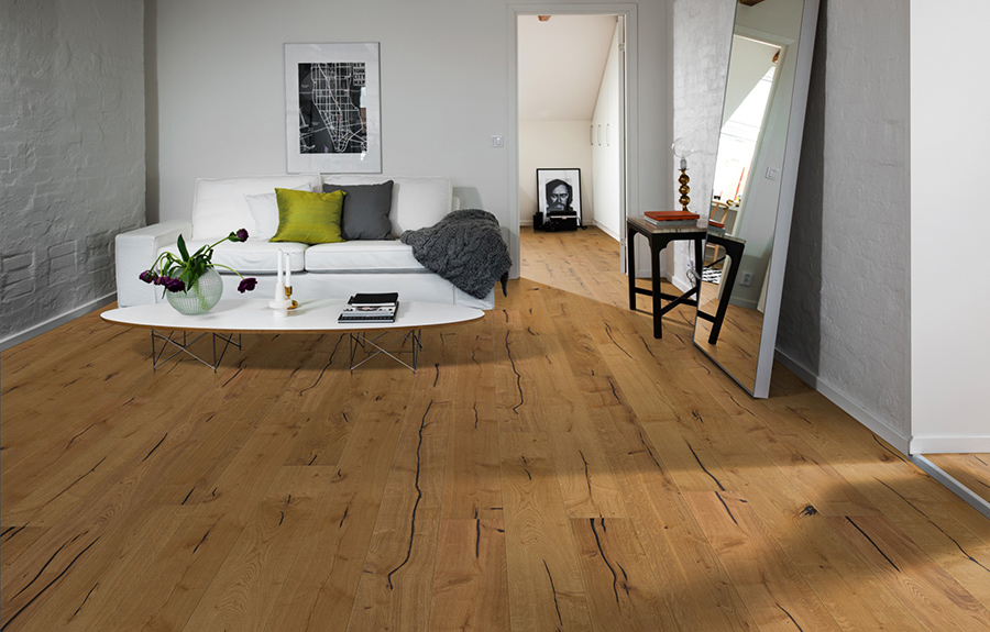 Финнведен – дубовая доска в деревенском стиле с сучками, трещинами и вкраплениями. Насыщенные натуральные тона с оттенками янтаря и меда.