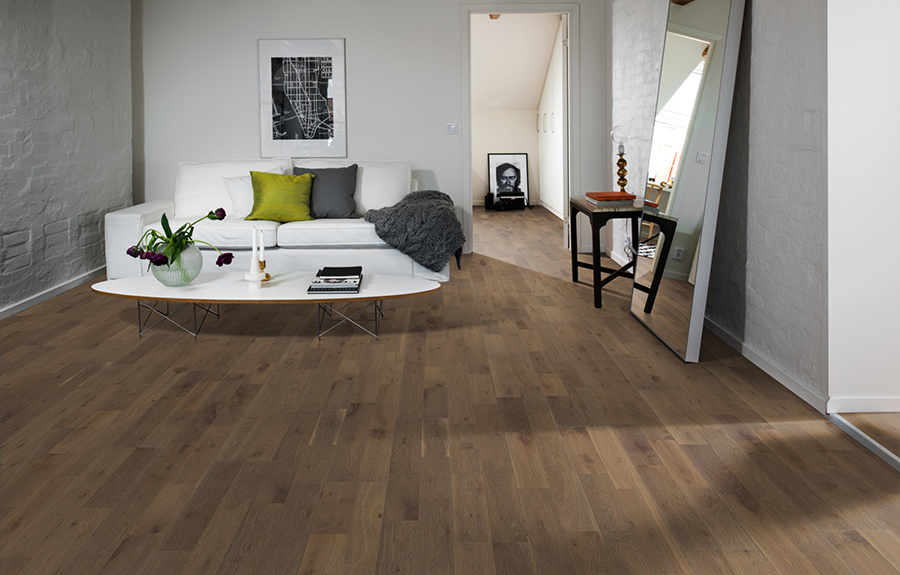 Дуб Гранит – рустикальный пол с естественными сучками и вариациями цвета. Тонирован серым и браширован.