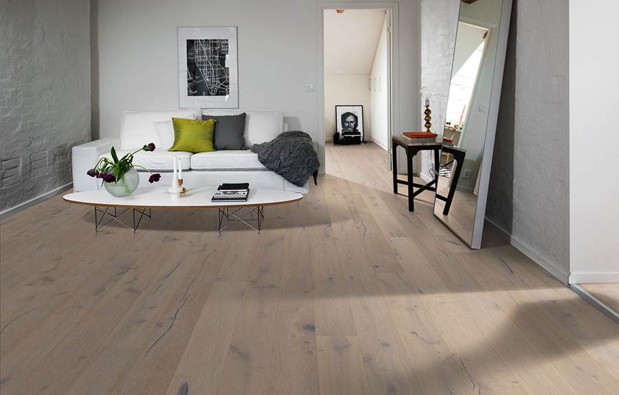 Дуб Олоф – по-настоящему рустикальный продукт с глубокой брашировкой и ручной выборкой волокон, что подчеркивает природную красоту доски и делает ее уникальной. Тонировка белым маслом создает эффект белого пола. Под натуральным маслом.